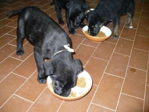 E’ buona regola somministrare al cucciolo, almeno nella prima settimana di permanenza nella nuova casa, lo stesso cibo usato dall’allevatore. Ogni cambiamento di dieta dovrebbe essere attuato gradualmente con variazioni del 25% per volta, per evitare gli eventuali disturbi digestivi e i problemi di educazione alla pulizia casalinga ad essi connessi.